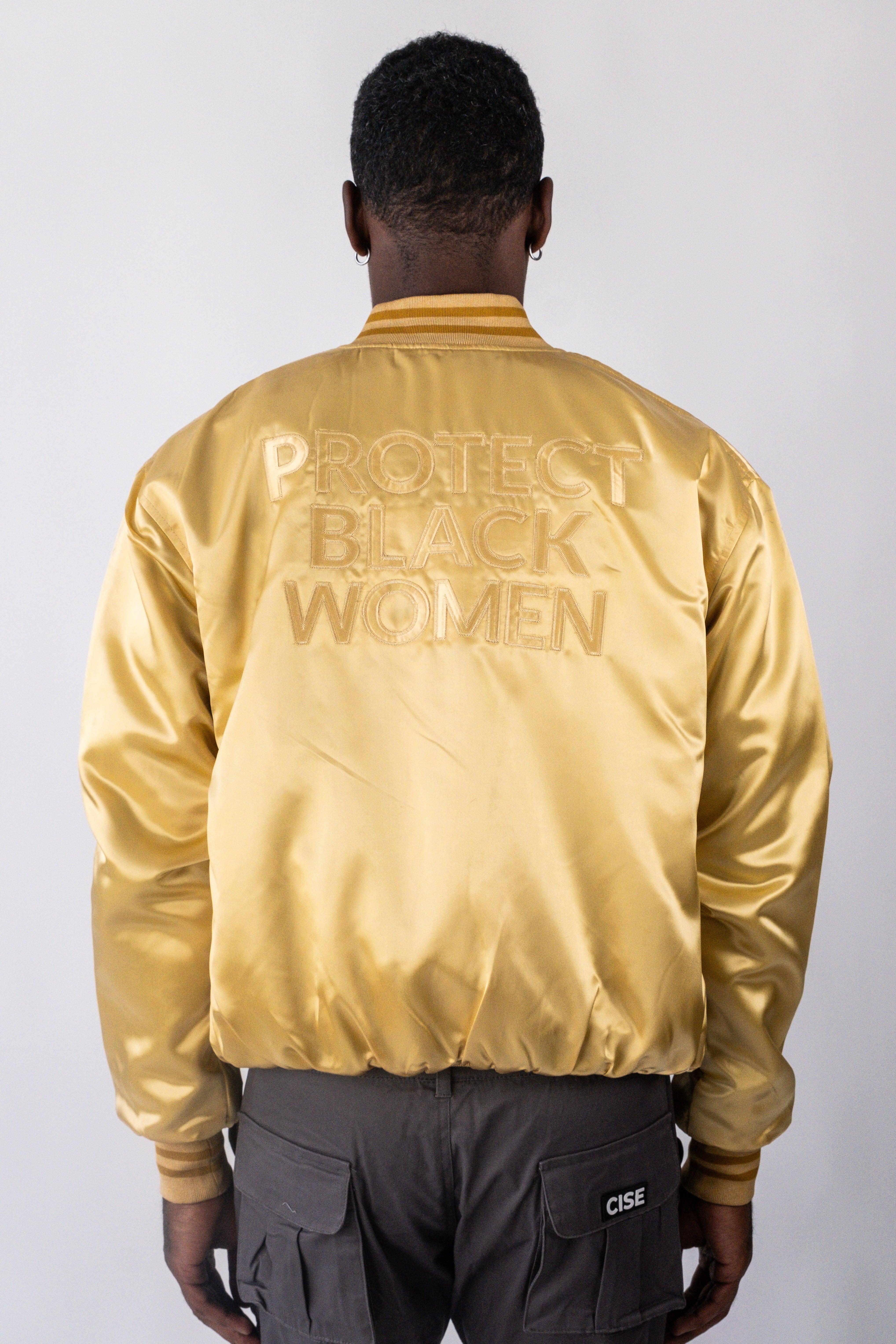 Featuring a bold "PROTECT BLACK WOMEN" statement on the back and two-tone black ribbed cuffs, this jacket will help you make a statement in the most fashionable way. Step out with confidence and comfort knowing you look great and are making a difference.